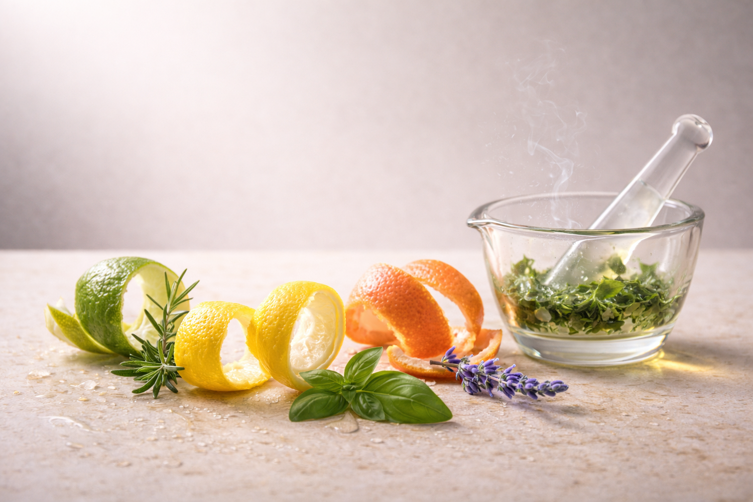 This category blends sparkling citrus with aromatic herbs such as lavender, rosemary, basil, thyme, or clary sage. The aromatic dimension is driven by molecules like linalool, camphor, eucalyptol, and thymol, adding herbal freshness and structure. Citrus-aromatic accords are clean, energetic, and often associated with fougère and Mediterranean styles. They bridge brightness and sophistication.